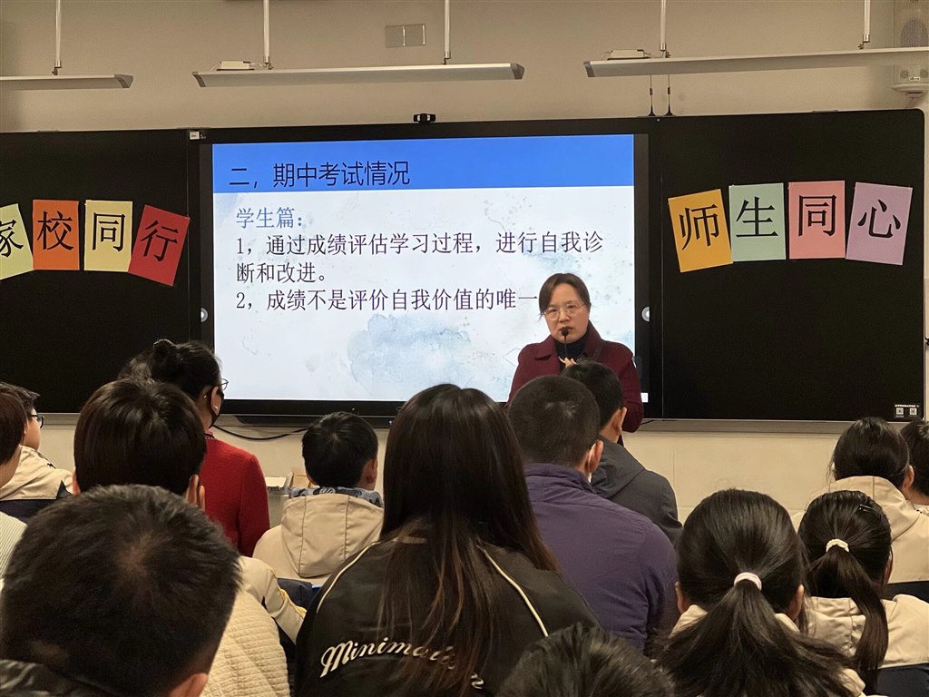 讲座结束后,家长们来到班级,继续家校共育之旅。班主任们精心布置,认真组织,让家长们在冬日感受到了龙城初中的温暖。各班级以学期中这样一个时间节点为契机,与家长们交流了班级的教育教学质量、学生的综合素质培养、班级的整体情况等话题,让家长对孩子和班级的情况有了更加清晰全面的了解。同时强调要注意八年级学生的心理健康安全,交通安全,食品安全等问题,为学生的健康成长保驾护航。