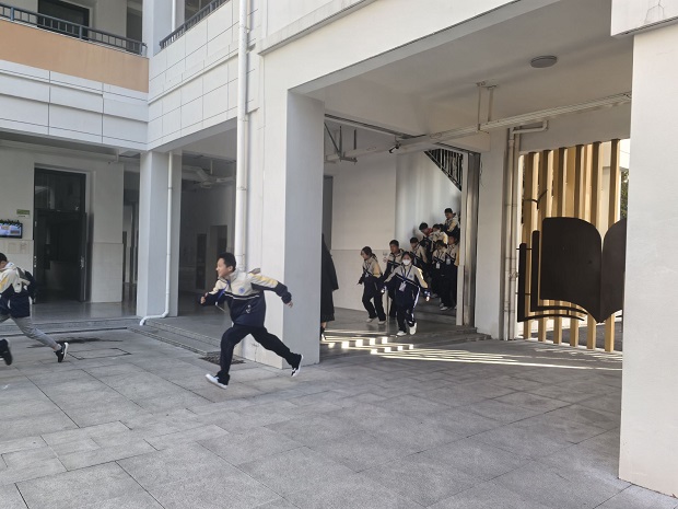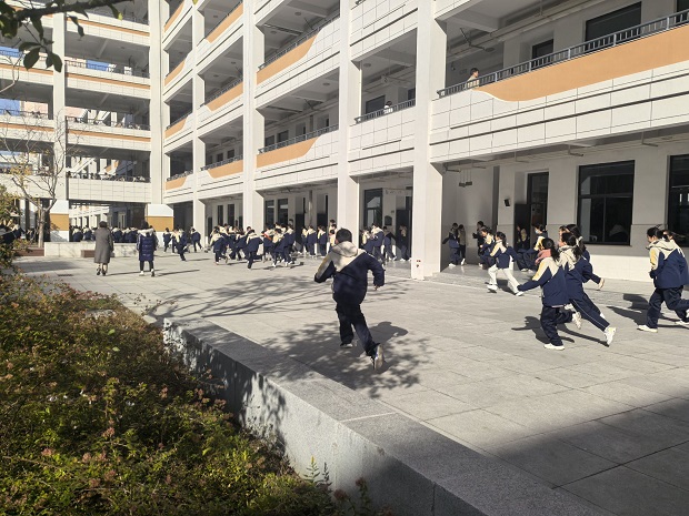 随着警报声突然响起,师生们迅速进入紧急状态,各点位指挥人员也立即到达指定地点。在班主任和任课老师的指引下,学生们按照预定的逃生路线,迅速、有序地撤离到操场等安全地带。整个过程,没有一个学生滞留,没有一个学生受伤,全体师生安全撤离。