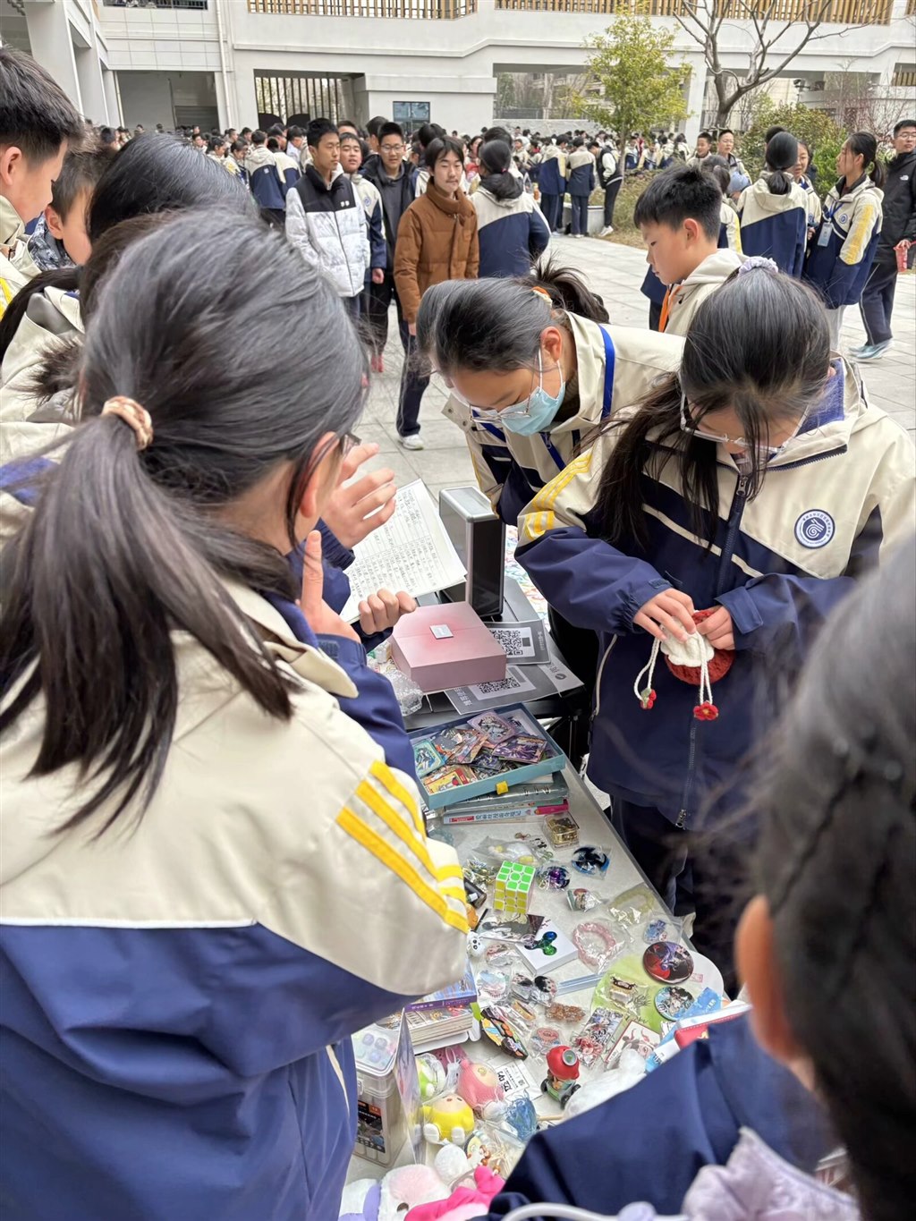 随着广播中轻快的音乐响起,爱心义卖正式拉开序幕。校园瞬间化身为创意与温暖交织的集市。