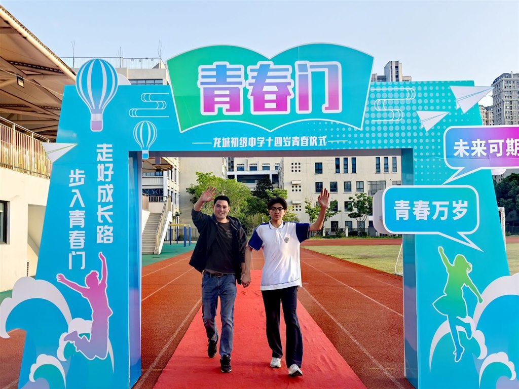 校青春仪式结束后,各班同学和家长一起携手并肩共走“青春门”。随后各班进行了丰富多彩的班级班级青春仪式。